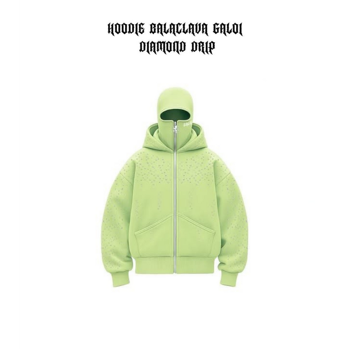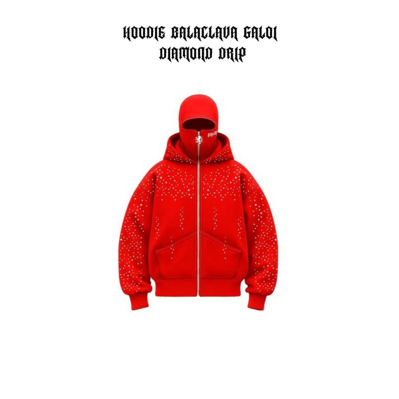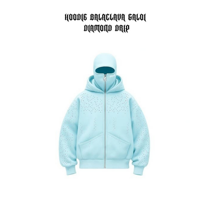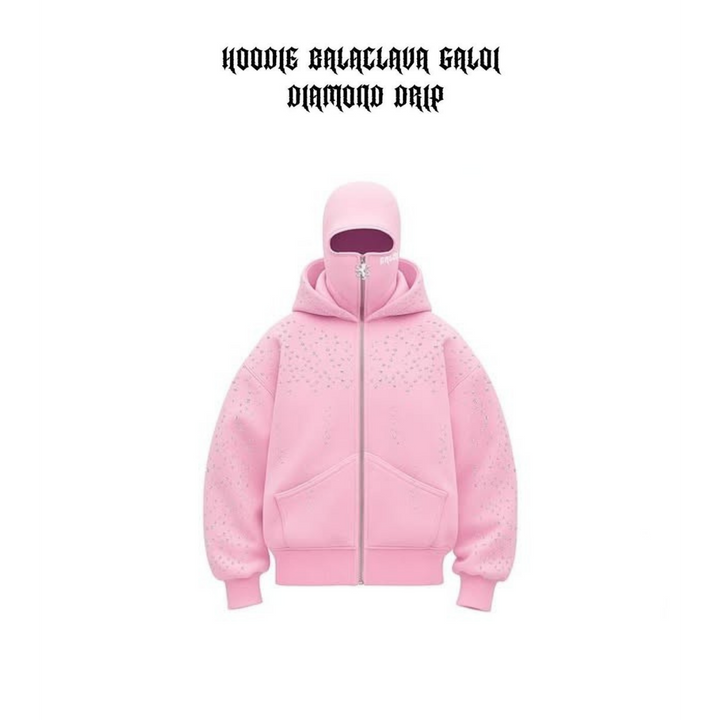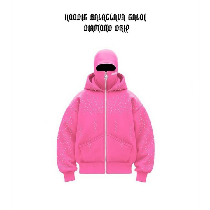 Polera de 100% algodón franela, cuenta con una balaclava completa incorporada, estampados reflectivos y pedrería por toda la prenda.