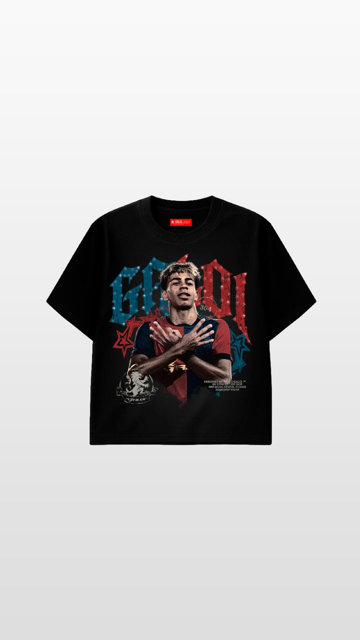 Polo iconico de Lamine Yamal estampado en +12 colores y complementado con pedreria en strass.