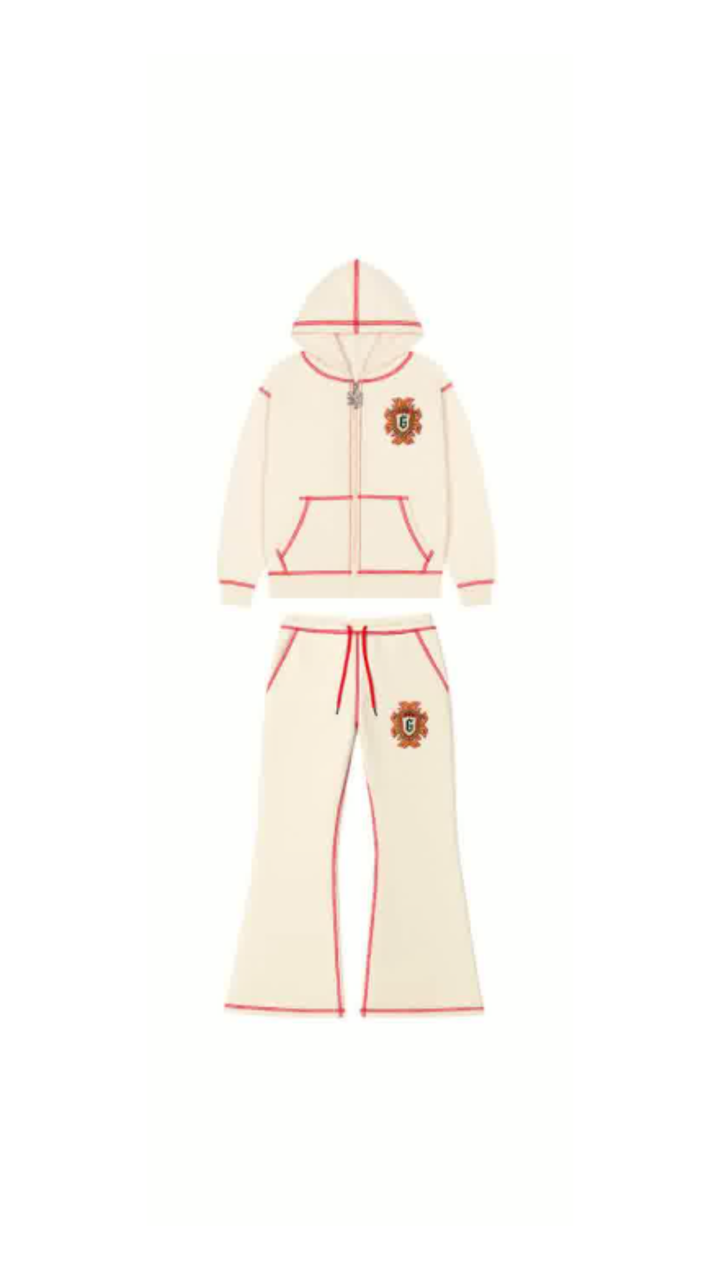 Tracksuit hecho de 100% algodón y bordados, cierre de alta calidad y pantalón en fit acampanado flared.